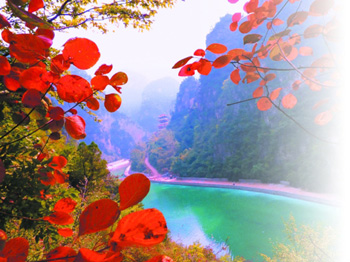 這里的魅力,令游人陶醉:春日林木翠綠,煙霧籠罩,近山青蔥,遠(yuǎn)山淡藍(lán);夏天樹葉蔽日,鶯燕鳴唱,山花競放,草叢茂密;秋季天高云淡,滿目棕黃,稼禾飄香,山色分明;隆冬瑞雪飄零,銀裝素裹,懸崖峭壁,冰柱林立。