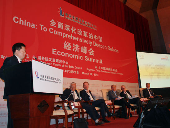 “中國發(fā)展高層論壇2014”于3月22日-24日在釣魚臺(tái)舉行。圖為“改革優(yōu)先序與短期增長風(fēng)險(xiǎn)”分會(huì)場。
