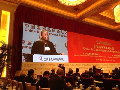 羅睿蘭:各位早上好!尊敬的副部長,各位同事,非常高興能夠再次回到中國參加中國發(fā)展高層論壇,在過去兩天當(dāng)中我饒有興趣的傾聽了各位發(fā)言嘉賓的發(fā)言,正如張高麗副總理昨天所說的,對中國來說我們建立具有更加有序的競爭市場,同時他強(qiáng)調(diào)了中國作為世界上第二大經(jīng)濟(jì)體,一方面他要把這個國家建成一個經(jīng)濟(jì)大國,同時要成為一個由創(chuàng)新驅(qū)動的經(jīng)濟(jì)強(qiáng)國,他同時討論到了所謂產(chǎn)能過剩的問題,今天我也想做一些我的補(bǔ)充,在這個話題上我們做了很多的討論,比如說通過整合或者退出機(jī)制解決過;蛘咴黾有枨蟆⑻岣咝,最后我也想可能是要通過增加需求解決這些產(chǎn)能過剩的問題,我同意這些觀點,但是我想建議的是,所有的對于這些行業(yè)的影響,歸根到底還是落實到如何提高,或者產(chǎn)業(yè)鏈上向高端發(fā)展,如何在產(chǎn)業(yè)鏈上向高端延伸?我覺得主要是讓工業(yè)化和信息化進(jìn)行高度的銜接,也就意味著我們必須會面對的,或者必須將我們的產(chǎn)業(yè)化向上延伸的工作,與工業(yè)化和信息化相互銜接起來,在十八屆三中全會當(dāng)中也談到了對下一代的信息技術(shù)的重視,那么蘇部長同時討論到了或者談到了工業(yè)化和信息化這兩個話題,對中國也是中國經(jīng)濟(jì)戰(zhàn)略當(dāng)中重要的部分。我完全贊成這種觀點,一方面我們已經(jīng)了解到無論是傳統(tǒng)的還是新興的產(chǎn)業(yè)都需要利用科技朝著價值鏈的高端進(jìn)行延伸。