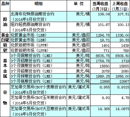 國際大宗商品期貨價格明細(xì)表[2014-3-31]