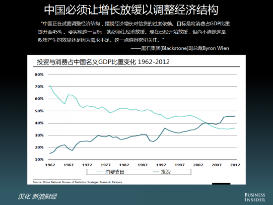 “中國正在試圖調整經濟結構,擺脫經濟增長對信貸的過度依賴。目標是將消費占GDP比重提升至45%。要實現(xiàn)這一目標,就必須讓經濟放緩,F(xiàn)在已經開始放緩,但尚不清楚這是政策產生的效果還是因為需求不足。這一點值得密切關注!薄谑笨偛肂yron