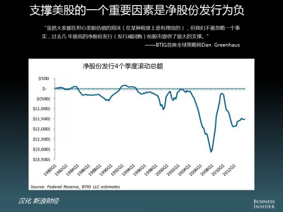 7. 支撐美股的一個重要因素是凈股份發(fā)行為負