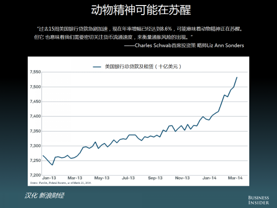 “過去15周美國銀行貸款急劇加速,現(xiàn)在年率增幅已經達到8.6%,可能意味著動物精神正在蘇醒。但它也意味著我們需要密切關注貨幣流通速度,來衡量通脹風險的出現(xiàn)!薄狢harles