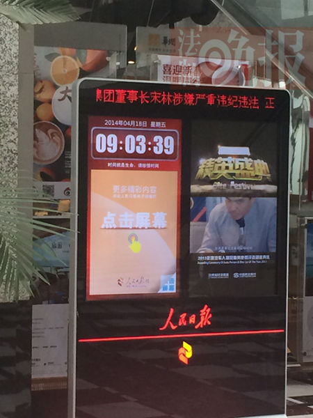 在熙攘人群中記者注意到,大堂一側(cè)滾梯旁立有人民日報電子公告屏幕,上面顯示有日期時間及精英盛典廣告。