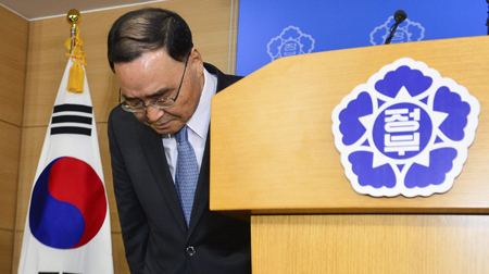 韓國(guó)總理鄭烘原27日因“歲月”號(hào)沉船事故引咎辭職。總統(tǒng)府青瓦臺(tái)發(fā)言人閔庚旭當(dāng)天在記者會(huì)上表示,總統(tǒng)樸槿惠批準(zhǔn)了總理鄭烘原的辭職請(qǐng)求。由于當(dāng)前的首要任務(wù)是“歲月”號(hào)沉船事故的搜救工作,因此將在事故處理工作收尾后受理辭呈。