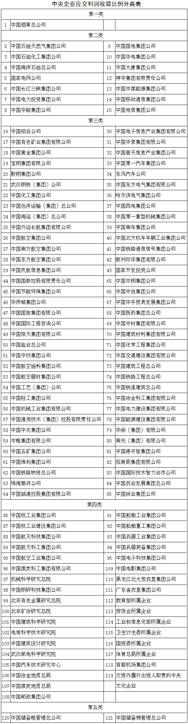 一、國有獨資企業(yè)應交利潤收取比例在現有基礎上提高5個百分點,即:第一類企業(yè)為25%;第二類企業(yè)為20%;第三類企業(yè)為15%;第四類企業(yè)為10%;第五類企業(yè)免交當年應交利潤(企業(yè)分類名單詳見附件)。符合小型微型企業(yè)規(guī)定標準的國有獨資企業(yè),應交利潤不足10萬元的,比照第五類企業(yè),免交當年應交利潤。