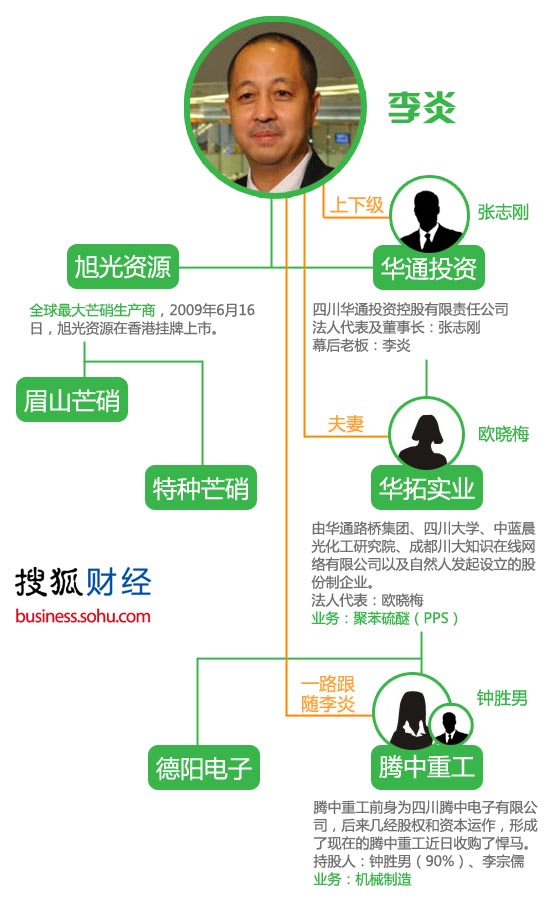 有關(guān)李炎的失蹤還引出了另一條線索,即包括騰中重工在內(nèi)的所謂“華通系”。有傳聞稱,包括德陽化工、德陽電子、旭光高新在內(nèi)的多家企業(yè)均由李炎實際控制。其中,騰中重工部分資產(chǎn)遭法院查封,德陽化工停產(chǎn),而旭光資源則在香港市場停牌,因其財務(wù)遭機構(gòu)舉報涉嫌造假。昨天下午,旭光高新公告稱,公司與董事長張志剛保持聯(lián)系,而張志剛也與大股東索郎多吉(即李炎)取得聯(lián)系,后者稱一切正常。