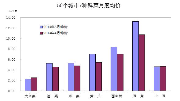 從發(fā)布的環(huán)比數(shù)據(jù)看,4月份鮮菜和豬肉價格下降比較突出,兩者合計影響CPI下降0.51個百分點,超過了CPI總降幅,是環(huán)比下降的主要原因。從歷史數(shù)據(jù)看,鮮菜價格為近三年同期最低水平。國家統(tǒng)計局此前發(fā)布的50個城市主要食品價格監(jiān)測數(shù)據(jù)也顯示,今年4月份黃瓜、豆角、西紅柿和油菜每千克均價分別為5.42元、10.74元、7.07元和4.53元,比3月份均價分別下降了23.2%、18.7%、16.0%和14.1%,價格下降較多。