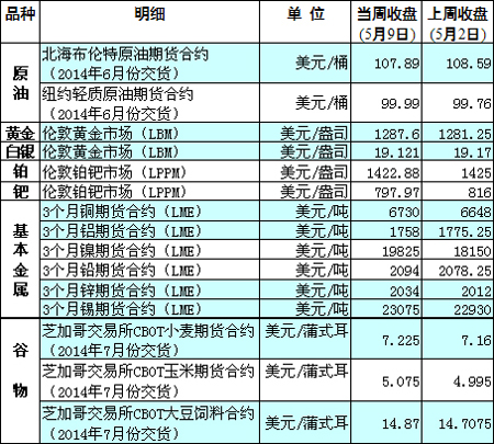 國(guó)際大宗商品期貨價(jià)格明細(xì)表[2014-5-5]