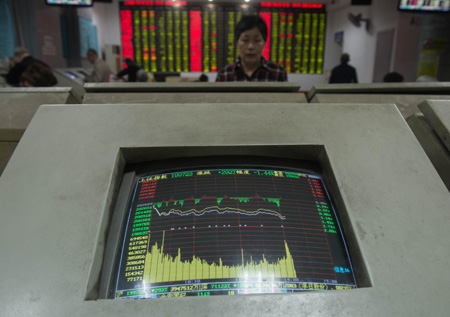 5月19日,滬深股市雙雙下跌,跌幅超過(guò)1%。上證綜指盤中一度失守2000點(diǎn),最終以2005.18點(diǎn)報(bào)收,較前一交易日跌1.05%;深成指收于7151.49點(diǎn),較前一交易日跌1.25%。 圖為股民在杭州一家證券營(yíng)業(yè)所內(nèi)關(guān)注股市行情。