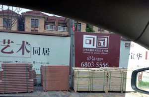 在一幅幅大型戶外廣告“可園·與藝術(shù)同居”、“可園·寶華山麓的文化藝術(shù)村落”、“品鑒熱線……”的指引下,記者以購(gòu)房者名義找到售樓處,門口的保安習(xí)慣性地問“來看房的嗎”,當(dāng)?shù)玫娇隙ǖ幕卮鸷笠晃皇蹣菃T依托沙盤向記者進(jìn)行了宣傳介紹。據(jù)這位售樓員稱,該項(xiàng)目分為多期建設(shè),目前已經(jīng)建好了可一美術(shù)館、可一畫家村和可園100多套別墅。畫家村目前大概有三四十位江蘇藝術(shù)家入駐,這些別墅都是按照各個(gè)畫家的個(gè)性化需求進(jìn)行特別設(shè)計(jì)的,售價(jià)較低,幾近成本價(jià)?蓤@先期開發(fā)了部分聯(lián)排別墅和60多套獨(dú)棟別墅,大概7萬平方米,面積在200多平方米的聯(lián)排別墅已經(jīng)賣得差不多了,大概8500元/平方米;獨(dú)棟一般都在600多平方米,占地半畝到1畝左右,已銷售了十幾套,總價(jià)在600萬元左右。售樓員坦承,已開發(fā)的土地用地性質(zhì)是文化用地,產(chǎn)權(quán)50年,不能做按揭貸款。尚未開發(fā)的土地是以住宅用地拿下來的,下一步開發(fā)前可能要先做市場(chǎng)調(diào)研,多半會(huì)考慮建聯(lián)排別墅。
