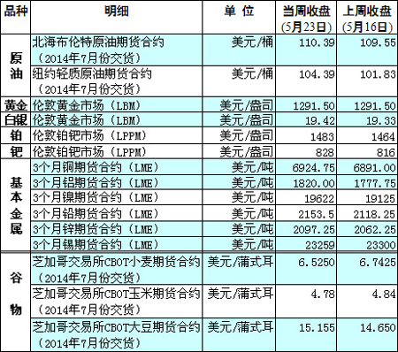 國際大宗商品期貨價格明細(xì)表[2014-5-26]