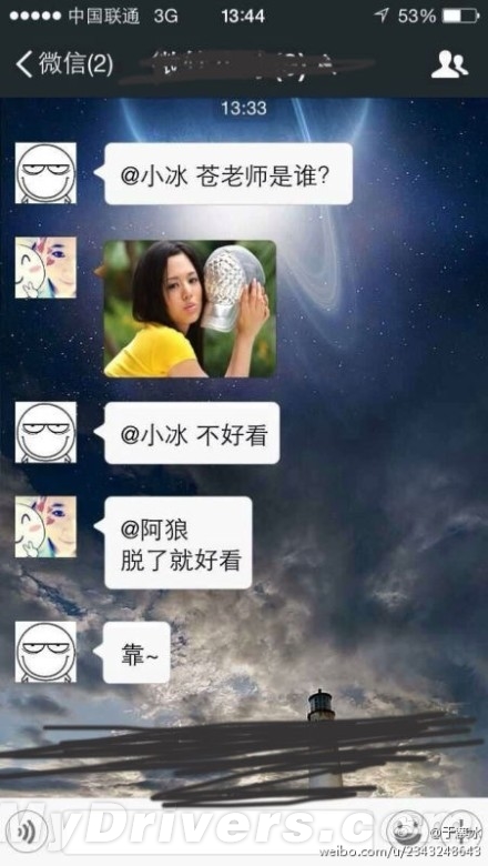 微軟“小冰”上線之后,遭到眾多網(wǎng)友紛紛調(diào)戲,而“小冰”的回復(fù)也是各種無(wú)節(jié)操,以下是部分網(wǎng)友貼出的聊天截圖。