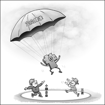 “加大定向降準(zhǔn)措施力度,可以說導(dǎo)向更明確、要求更具體,有利于正向激勵金融機構(gòu)將信貸資源更多投向三農(nóng)、小微企業(yè)等國民經(jīng)濟(jì)薄弱環(huán)節(jié),從而促進(jìn)經(jīng)濟(jì)結(jié)構(gòu)的調(diào)整!敝袊嗣胥y行金融市場司司長紀(jì)志宏說,加大定向降準(zhǔn)措施力度既能增加金融機構(gòu)的可貸資金,又能降低三農(nóng)、小微企業(yè)的融資成本。相比此前更多指向涉農(nóng)銀行,下一步的范圍或涵蓋更多與小微貸款相關(guān)、符合比例要求的金融機構(gòu)。
