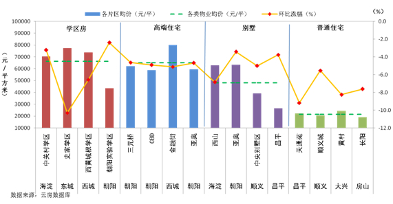 本月北京市全部16個(gè)監(jiān)測(cè)片區(qū)物業(yè)的價(jià)格均呈下降趨勢(shì),其中上月漲幅最大的史家學(xué)區(qū)學(xué)區(qū)房本月下降幅度最大,環(huán)比下跌10.3個(gè)百分點(diǎn)。各類物業(yè)中,普通住宅下降幅度較大,4個(gè)監(jiān)測(cè)片區(qū)環(huán)比平均下跌7.7%。