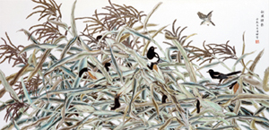 | 秋風(fēng)掠影,粉彩作品,124cm×61cm,2012年 |