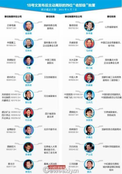 18號文件發(fā)布后主動離職的25位“省部級”獨董