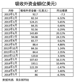商務(wù)部17日最新公布的數(shù)據(jù)顯示,5月吸收外資同比再現(xiàn)負(fù)增長,這也是我國吸收外資繼今年3月之后再次出現(xiàn)負(fù)增長。而就在一天前,央行公布的數(shù)據(jù)也顯示,金融機構(gòu)5月新增外匯占款較4月大幅驟降逾六成。