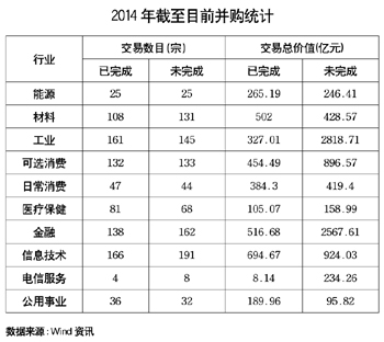 IPO市場的混亂并不能阻擋中國并購市場的超常規(guī)活躍。數(shù)據(jù)顯示,2014年以來,中國市場已完成和未完成的并購交易總金額高達1.2萬億元之巨。在經(jīng)濟結(jié)構(gòu)轉(zhuǎn)型、傳統(tǒng)產(chǎn)業(yè)陣痛和新興產(chǎn)業(yè)發(fā)展的大背景下,A股市場正在迎來前所未有的并購大時代。