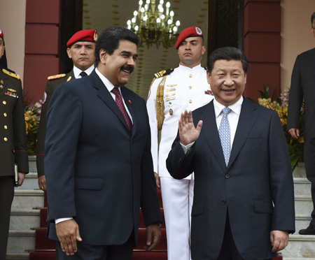 當(dāng)?shù)貢r(shí)間7月20日,國家主席習(xí)近平在加拉加斯同委內(nèi)瑞拉總統(tǒng)馬杜羅舉行會談,兩國元首宣布將中委關(guān)系提升為全面戰(zhàn)略伙伴關(guān)系。習(xí)近平提出,應(yīng)加強(qiáng)兩國合作頂層設(shè)計(jì),以金融和投資為引擎,以能源合作為主軸,多個(gè)輪子一起轉(zhuǎn)。雙方要用好融資合作機(jī)制,推進(jìn)礦產(chǎn)、基礎(chǔ)設(shè)施建設(shè)、科技合作,盡早啟動農(nóng)業(yè)示范園建設(shè)。中方愿加大對委方衛(wèi)星技術(shù)轉(zhuǎn)讓,鼓勵(lì)有實(shí)力的中國企業(yè)積極參與委內(nèi)瑞拉經(jīng)濟(jì)特區(qū)建設(shè)。