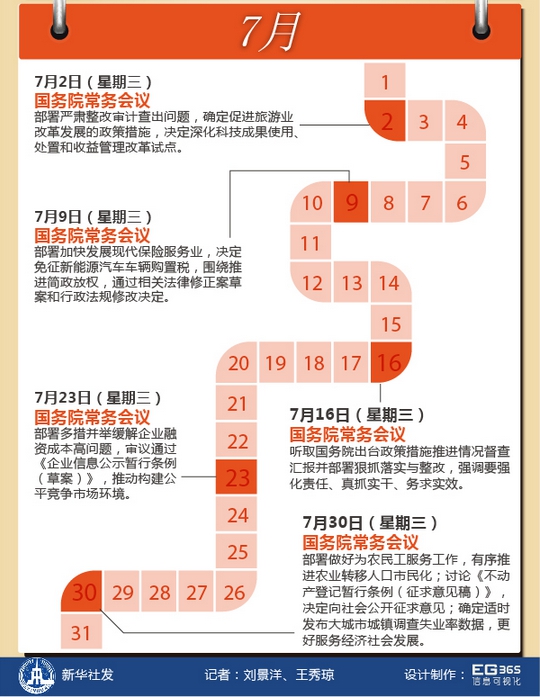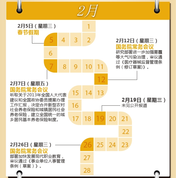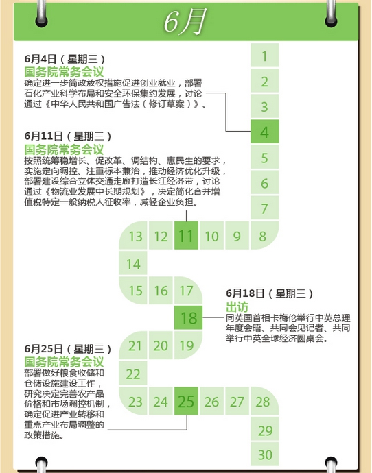 您一周哪天最忙?中國(guó)國(guó)務(wù)院總理李克強(qiáng)的回答很可能是——星期三。在今年前7個(gè)月的31個(gè)星期三里,除去元旦、春節(jié)兩次休息、8次出席重要活動(dòng)或考察出訪、一次未見公開報(bào)道,李克強(qiáng)都在主持召開國(guó)務(wù)院常務(wù)會(huì)議。星期三,成為觀察中國(guó)經(jīng)濟(jì)轉(zhuǎn)入中高速增長(zhǎng)新常態(tài)下的窗口。