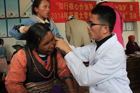 西藏藏醫(yī)學(xué)院團(tuán)委攜手對(duì)口支援院校北京中醫(yī)藥大學(xué)“三下鄉(xiāng)”團(tuán)隊(duì)近日來(lái)到拉薩市曲水縣敬老院開(kāi)展義診活動(dòng),為老人們把脈問(wèn)診,對(duì)于診斷出來(lái)的常見(jiàn)疾病采用針灸火療,按摩拔罐等方法進(jìn)行一些基本治療,藏醫(yī)學(xué)院還向老人們捐贈(zèng)了一些基本藏藥。