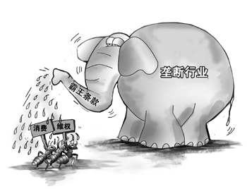 此外,應(yīng)破除一些行業(yè)的壟斷行為,讓霸王條款在競(jìng)爭(zhēng)中自生自滅。相關(guān)專(zhuān)家認(rèn)為,需要引入充分的市場(chǎng)競(jìng)爭(zhēng),從而讓壟斷企業(yè)丟掉依靠壟斷地位占領(lǐng)市場(chǎng)的依賴思想,回歸到以服務(wù)爭(zhēng)取客戶的市場(chǎng)本質(zhì)。只有充分的競(jìng)爭(zhēng),給消費(fèi)者更多的選擇權(quán),才能從根本上清除滋生“霸王條款”的土壤。