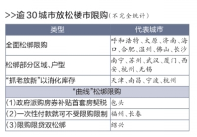 受到今年以來樓市低迷的影響,一些高庫存的城市悄然開始為樓市松綁。從今年4月28日南寧打出限購放松第一槍至今,經(jīng)歷短短4個(gè)月左右的時(shí)間,限購松綁城市名單不斷擴(kuò)容。國內(nèi)46個(gè)限購城市中,杭州、佛山、紹興、太原、青島、溫州等30多個(gè)地方先后有條件放開限購或解除限購。