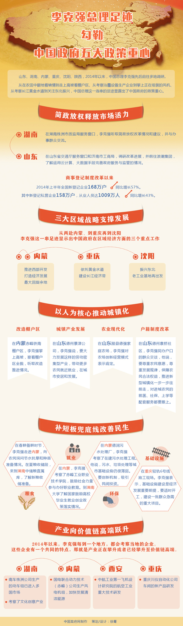 山東、湖南、內蒙、重慶、沈陽、陜西,2014年以來,中國總理李克強先后前往多地調研。