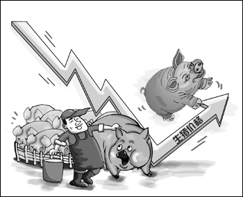湖南省湘潭縣排頭鄉(xiāng)延化村養(yǎng)豬大戶雍自強(qiáng)告訴《經(jīng)濟(jì)參考報(bào)》記者,3、4月生豬價(jià)格降到每斤5元多時(shí),每頭生豬至少要虧損300多元。現(xiàn)在豬價(jià)回升,開始有了一些“賺頭”。
