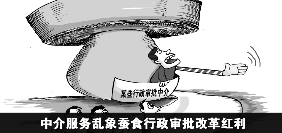 《經(jīng)濟(jì)參考報(bào)》記者近日在多地調(diào)查發(fā)現(xiàn),項(xiàng)目辦理主體一大半時(shí)間、精力和費(fèi)用花在中介環(huán)節(jié),中介組織重復(fù)審批、壟斷市場、收費(fèi)名目混亂等亂象層出不窮。很多中介服務(wù)組織與政府部門牽扯不清,既是部門權(quán)力的延伸,也存在利益輸送;鶎痈刹咳罕姳硎,國家推動(dòng)行政審批制度改革,加大簡政放權(quán)力度,讓企業(yè)和個(gè)人受益良多,但混亂的中介服務(wù)正吞噬著這些改革紅利,同時(shí)損害著政府的公信力和形象。