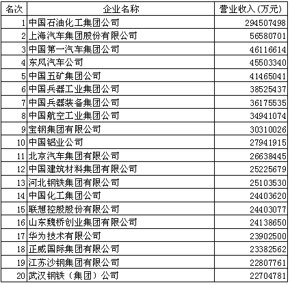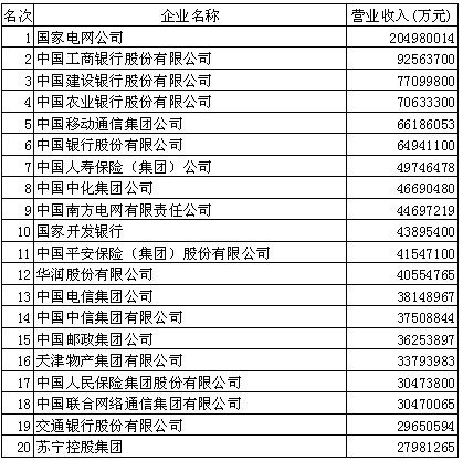 2014中國(guó)企業(yè)500強(qiáng)(前20)