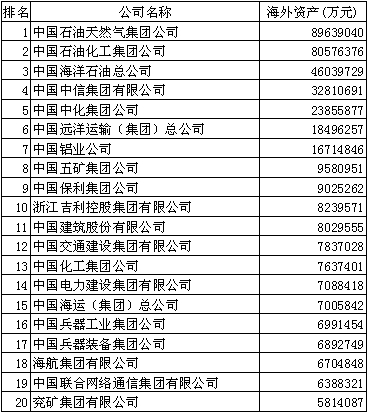 2014中國(guó)跨國(guó)企業(yè)100強(qiáng)名單(前20)