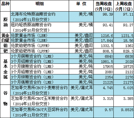 國(guó)際大宗商品期貨價(jià)格明細(xì)表[2014-9-22]