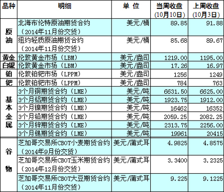 國際大宗商品期貨價格明細(xì)表[2014-10-13]