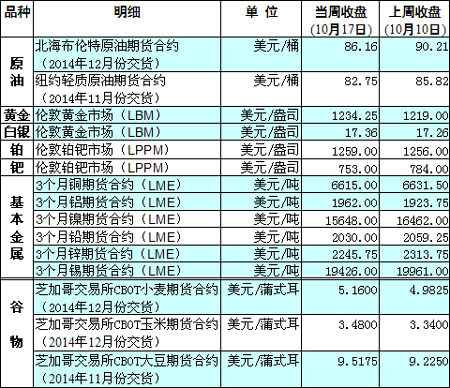 國(guó)際大宗商品期貨價(jià)格明細(xì)表[2014-10-20]