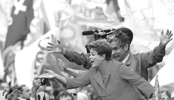 說(shuō)羅塞夫成為被內(nèi)韋斯和席爾瓦“斗地主”的對(duì)象,是因?yàn)樽詮?003年上臺(tái)執(zhí)政以來(lái),勞工黨迄今已連續(xù)執(zhí)政12年,是巴西恢復(fù)直接選舉以來(lái)執(zhí)政時(shí)間最長(zhǎng)的政黨。內(nèi)韋斯的社民黨,在2006年和2010年的大選中,均在與勞工黨的角逐中敗北。席爾瓦曾是盧拉政府的環(huán)境部長(zhǎng),但是2009年脫黨后以綠黨候選人身份參加2010年大選,在第一輪投票中獲得約19%的選票;本次代表社會(huì)黨參選,在第一輪投票中獲得約21%的選票。羅塞夫在第一輪投票中獲得約42%的選票,但是內(nèi)韋斯獲得的34%的選票與席爾瓦的選票相加,已經(jīng)超過(guò)羅塞夫。所以在第一輪和第二輪中間的三周時(shí)間里,羅塞夫和勞工黨使出渾身解數(shù),希望能夠爭(zhēng)取席爾瓦支持者手中的選票。