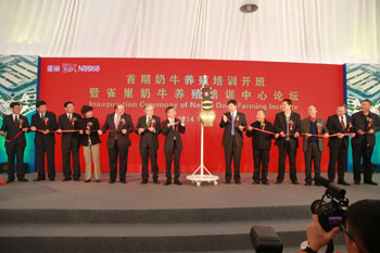各方嘉賓為雀巢奶牛養(yǎng)殖培訓中心首場培訓課開班搖鈴 |