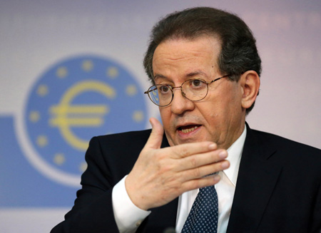 歐洲央行26日公布了歐元區(qū)銀行業(yè)全面審查與壓力測(cè)試結(jié)果,共有25家銀行未通過(guò)壓力測(cè)試,資金缺口為250億歐元。這一結(jié)果和市場(chǎng)預(yù)期接近,歐洲央行也對(duì)測(cè)試結(jié)果表示滿意。圖為10月26日,歐洲央行副行長(zhǎng)維克多·康斯坦西奧在德國(guó)法蘭克福出席新聞發(fā)布會(huì)。