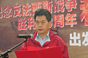 在活動啟動儀式上,主辦單位向公眾正式公布了本次活動供沿途民眾簽名的全程地圖,以及代表中國文化的和平友好之印。這些印章以各國首都的中文名稱和當(dāng)?shù)匚淖譃橹鲌D案,代表了中國文化與沿途各國文化的交流之意。宋敬武主任等領(lǐng)導(dǎo)在地圖上簽名并為參加活動的各界代表授旗,最后全體參與活動的各界人士一起宣誓:牢記歷史,珍惜和平,忠實(shí)記錄,認(rèn)真?zhèn)鞑ァ?BR> 本次活動由來自中國的產(chǎn)業(yè)界、新聞界和其他各界人士30余名代表共同組隊(duì),從北京出發(fā),經(jīng)莫斯科、伏爾加格勒、華沙、柏林等地,最終抵達(dá)法國諾曼底海灘。沿途中國隨團(tuán)人員和媒體將認(rèn)真考察二戰(zhàn)遺跡,參觀重要時代遺存,尋覓采訪戰(zhàn)爭見證人,記錄即將消逝的歷史記憶,同時拍攝大量照片素材和影像素材,回國后籌備“和平萬里行”主題紀(jì)念影展等系列活動,用實(shí)際成果向世界范圍內(nèi)紀(jì)念反法西斯戰(zhàn)爭勝利70周年獻(xiàn)禮。