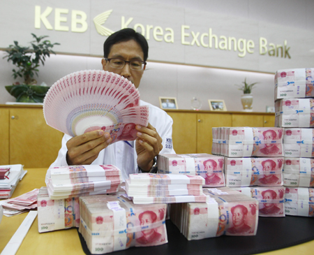 韓國央行3日公布首爾外匯市場首批人民幣對韓元直接交易做市商名單,包括工商銀行首爾分行等5家外資銀行和多家韓國本地銀行成為首批做市商,此舉標(biāo)志著人民幣對韓元直接交易的準(zhǔn)備工作已接近完成。 圖為中國工商銀行首爾分行員工在向記者展示業(yè)務(wù)流程。