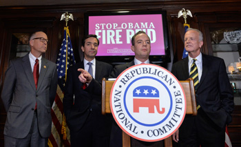 5日,在美國首都華盛頓,共和黨全國委員會主席賴因斯·普里伯斯(右二)在新聞發(fā)布會上講話!