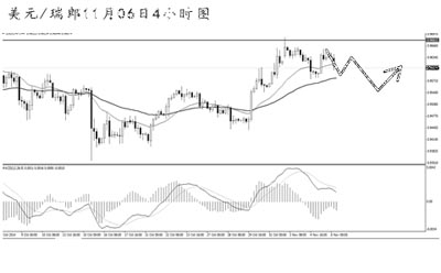 美元兌瑞郎沖高后保持震蕩節(jié)奏。日線圖均線系統(tǒng)多頭排列,前方高點阻力0.9680并沒有被有效升破。從4小時圖上看,空頭動能已有所展現(xiàn),首先關注0.9540一線的道氏點支撐,匯價若跌破此位置,將展開更為明顯的下跌。短線匯價面臨下調風險,但預計后市仍將以走高為主,繼續(xù)向0.9700上方發(fā)起沖擊。