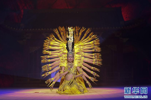 11月10日,國(guó)家主席習(xí)近平和夫人彭麗媛在北京為出席亞太經(jīng)合組織第二十二次領(lǐng)導(dǎo)人非正式會(huì)議的各成員經(jīng)濟(jì)體領(lǐng)導(dǎo)人、代表及配偶舉行歡迎晚宴。這是歡迎晚宴上的文藝演出。新華社記者 蘭紅光/攝