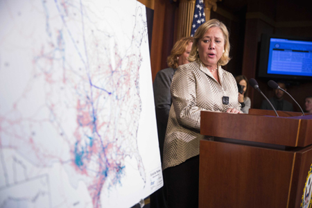11月18日,批準(zhǔn)建設(shè)“拱心石”XL輸油管項(xiàng)目的法案在美國聯(lián)邦參議院表決,結(jié)果59票贊成、41票反對(duì),未能達(dá)到通過法案所需的60票門檻,以一票之差未能通過。“拱心石”XL輸油管由加拿大管道公司建造,希望將加拿大艾伯塔省的油砂運(yùn)往美國墨西哥灣沿岸煉油廠,但遭環(huán)保人士反對(duì)。圖為支持該項(xiàng)法案的參議員瑪麗·蘭德里歐在做最后的游說。