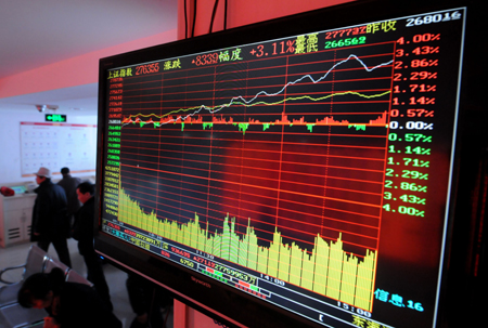 12月2日,滬深兩市低開高走,滬指在券商、銀行、保險等權(quán)重板塊帶動下暴漲83.39點,滬指創(chuàng)出2013年9月9日以來單日最大漲幅。截至收盤,滬指報2763.55點,漲83.39點,漲幅3.11%,深成指報9366.95點,漲271.19點,漲幅2.98%。其中,券商股幾乎全線漲停,方正證券、國元證券等9股漲停。 圖為,在河南洛陽一家證券營業(yè)廳內(nèi)拍攝的當日滬指漲幅K線圖。