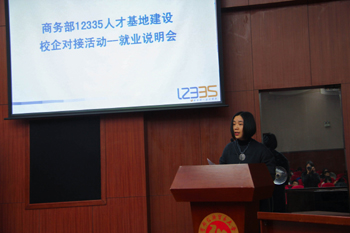 據(jù)介紹,12335服務(wù)平臺將為企業(yè)服務(wù)的環(huán)節(jié)提前到校園人才培養(yǎng)階段,為我國企業(yè)參與國際競爭提供人才保障。通過知識競賽等活動,為學生創(chuàng)造檢驗學習效果的平臺,搭建學校和企業(yè)對接的橋梁。將學生在校教學、實踐、就業(yè)相結(jié)合,提高學生的商務(wù)知識技能、實際操作能力和就業(yè)競爭力,并為企業(yè)特別是小微企業(yè)培養(yǎng)和輸送商務(wù)人才,為企業(yè)參與國際競爭提供人才保障。