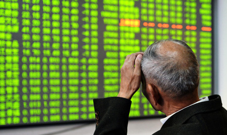 12月9日,滬深兩市雙雙走跌。截至收盤,上證綜指收?qǐng)?bào)2856.27點(diǎn),較前一交易日下跌5.43%;深證成指收?qǐng)?bào)10116.49點(diǎn),較前一交易日下跌4.15%。上證綜指跌幅創(chuàng)近5年最大單日跌幅。滬深兩市成交額超過了1.2萬億元,再度刷新歷史“天量”,跌停股數(shù)超過了180只。圖為股民在杭州一證券交易場(chǎng)所關(guān)注股市行情。