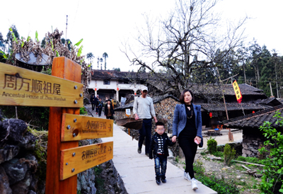 黃林古村。黃林村位于湖嶺鎮(zhèn)西部,坐落在“東甌第一峰”金雞山半山腰,村中錯(cuò)落有致地分布著68幢共289間青瓦石墻的晚清古民宅,是瑞安現(xiàn)存規(guī)模較大、保存最完整的古村落。村后曲折的溪流,古樸的老屋和村前村后的茂林修竹相得益彰,猶如一幅“屋在林中、林在屋外”的中國山水畫。