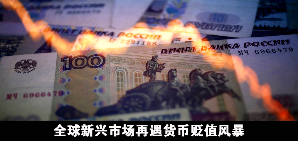 受多重利空因素影響,近幾個月新興市場貨幣全面下跌。其中,俄羅斯盧布對美元自今年初以來已累計下跌約40%,巴西雷亞爾對美元匯率在最近三個月也下跌了17%。